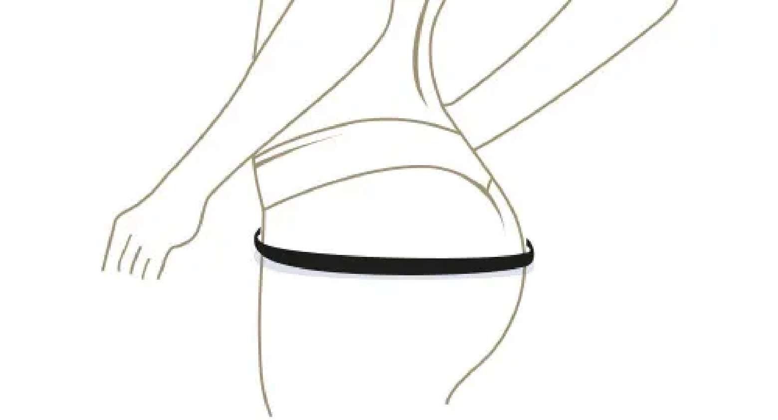Ubica el metro alrededor de tu cadera por la parte más sobresaliente. Ver Ilustración.