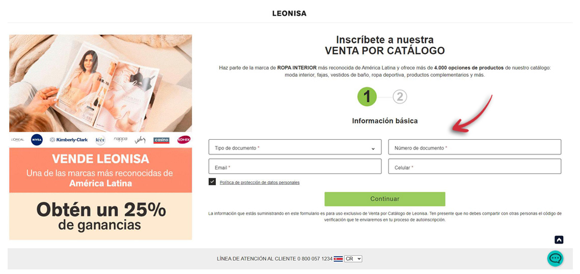 Ingresa los datos y en tan sólo dos pasos estarás inscrita en nuestra Venta por catálogo Leonisa