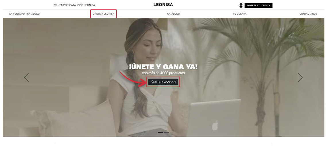 Haz clic en "ÚNETE A LEONISA" o en el botón del banner principal