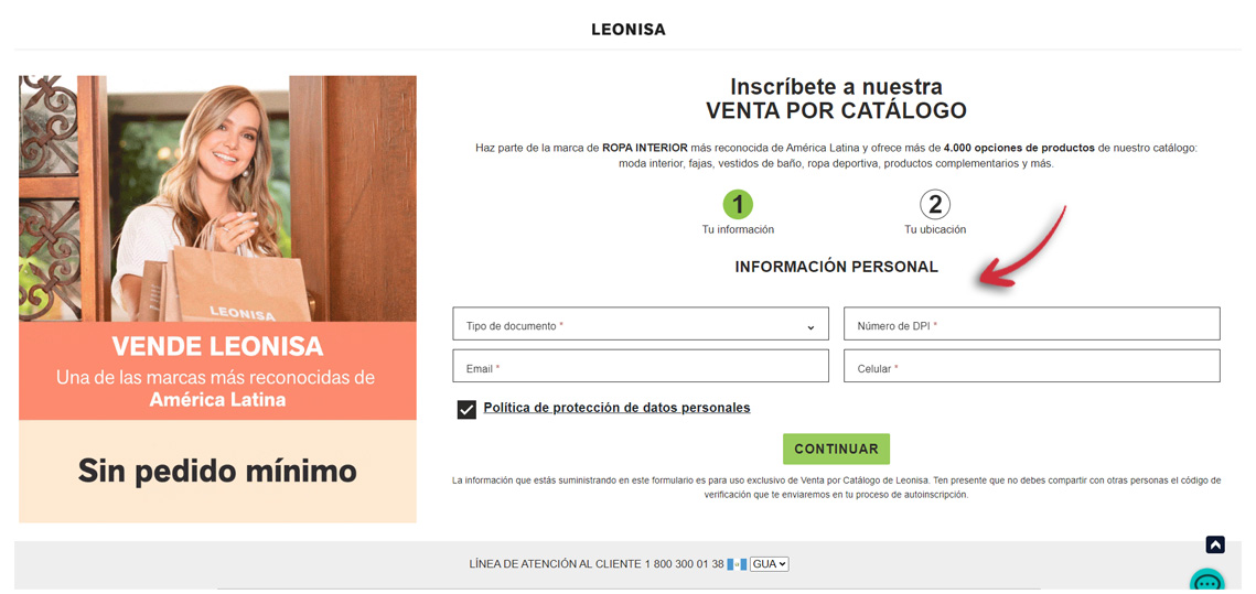 Ingresa los datos y en tan sólo dos pasos estarás inscrita en nuestra Venta por catálogo Leonisa