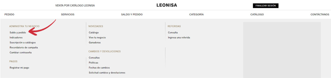 Al ingresar en el menú superior, haz clic en la opción Saldo y pedido.