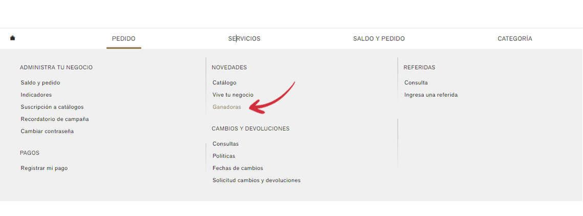 Al ingresar en el menú superior, haz clic en la opción Servicios / Ganadoras.