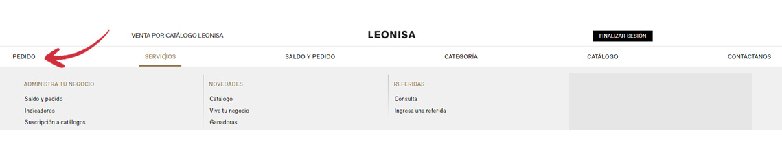 Al ingresar en el menú superior, haz clic en la opción Pedido.