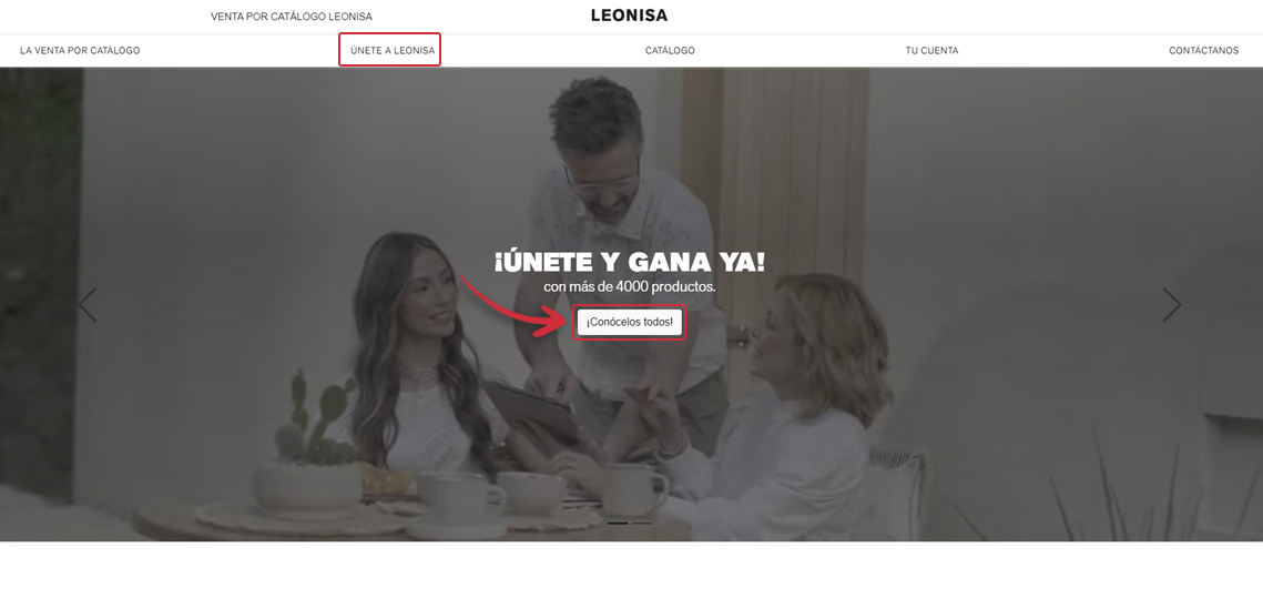 Haz clic en "ÚNETE A LEONISA" o en el botón del banner principal